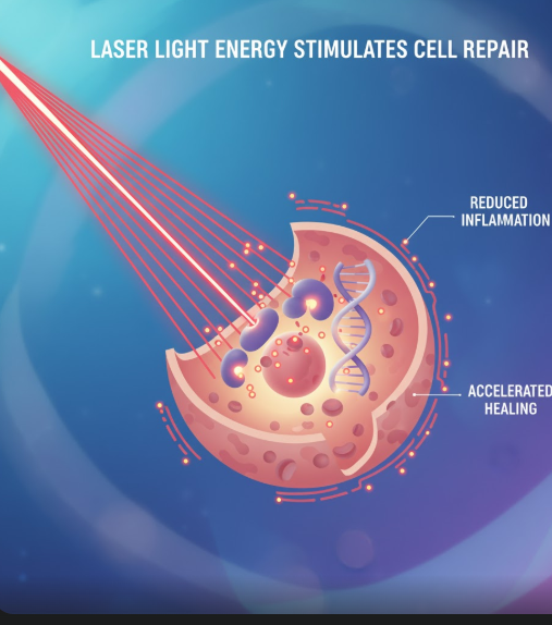 The magic behind Remy IV Laser Therapy lies in something called photobiomodulation. When the light hits your cells, it triggers the mitochondria — the powerhouse of the cell — to create more energy. That extra energy helps your body repair tissue faster and calm inflammation.